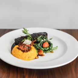 We had the salmon with mushrooms and the cooked kale as a side. The salmon was decent, albeit very slightly over-cooked. The mushrooms that were with it really had excellent flavoring. The kale side was good as well.We listened to some great jazz and the waitstaff were very attentive.